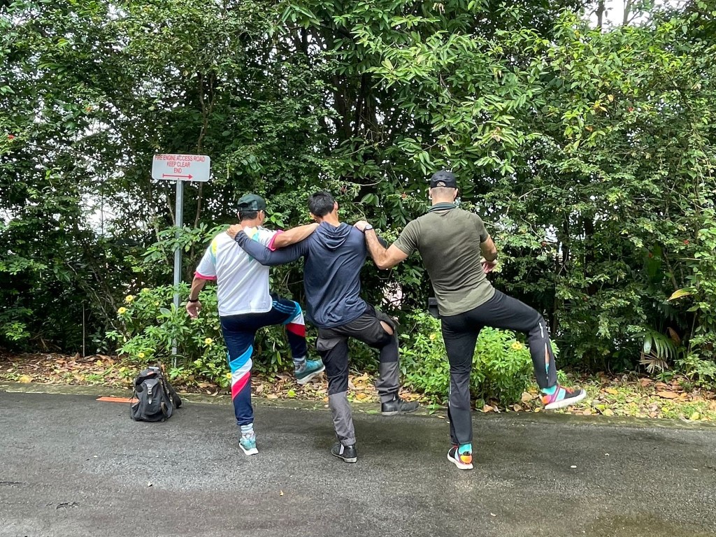 xxxvii. Those morning warmups. Maybe their use was more to wake up our bodies after cold nights than to warm up for the day’s trek. But they felt good, no matter what. And it felt great to do these as a group, everyone together.