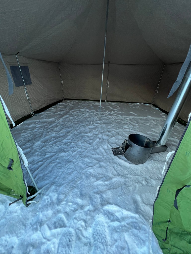 xi. Learning that keeping the fire going each night is our best chance to stay warm. Thinking ahead on getting enough firewood. Arranging hourly “fire feeding” shifts with tent-mates. We got pretty good at this by the time the last night in the tent came around.