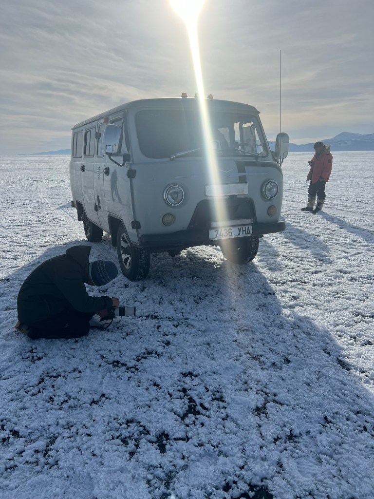 Circling back on those pineapples I bought in the supermarket. I did not have any specific plan to eat these when I first bought them, they were just backups in a way. So I left them on the floor of our trusted UAZ “van 2”, at one point almost completely forgetting I had them there. What a surprise it was to see one roll out the door as I opened it for something at our first lunch on the ice . I quickly picked up the can, asked the cooks to open it for us and found that it was mostly frozen! Nevermind! Nothing better than frozen pineapples as dessert after a lovely lunch on the ice! I passed the can around and was happy to see that many of my travel mates agreed with this idea and were happy to take a piece and enjoy its slushy coolness before we set off on our trek again.