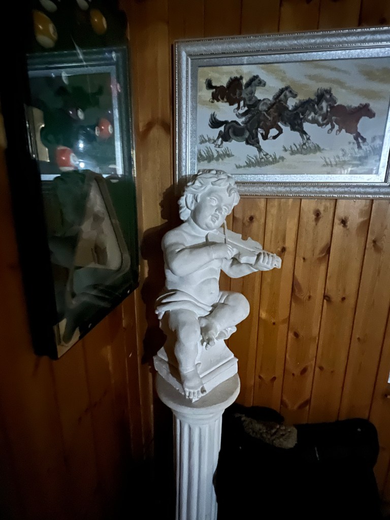 xliv. Finding a random angel statue in the roadside guesthouse we spent our last travel night at. Wonder who put it there and why?