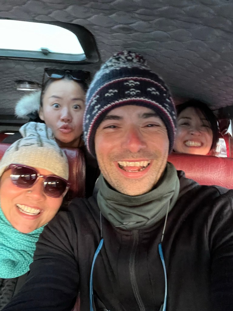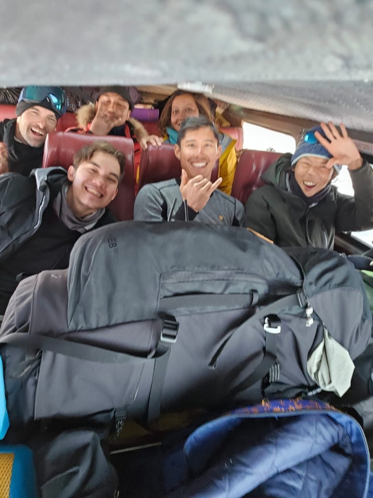 Sharing a tent with the guys, rooming with Amir and Jayden. Sharing meals with everyone on a regular schedule every day. Even just having the opportunity to say good morning and good night to the same group of people most days over a 10 day period made this trip special to me. Sharing the back seat of Van 2 with Ananthi and getting through better or worse (road conditions..). Ryan giving a positive word of encouragement or throwing in one of his epic impersonations of one of us or an actor familiar to all of us. Or showing us a candid shot he took of one of us when we did not notice, with a perspective and artistry to unique and special to Ryan only. Kneeling down on the ice during our breaks to catch a breath, take a sip of hot tea and checking in on each other. Going out as a group in the evening to collect firewood to keep us warm at night, doing group exercise in the morning to keep us warm as we start our day. Those are some of the most special moments which made this trip what it was. The country was beautiful, the trip challenging but achievable. But when you have 19 people and their local supporters come together and find a way to get along, to organize themselves around a great cause and to support each other all the way is where the magic of the experience really rests. That will be irreplicable and truly memorable for the rest of my life.