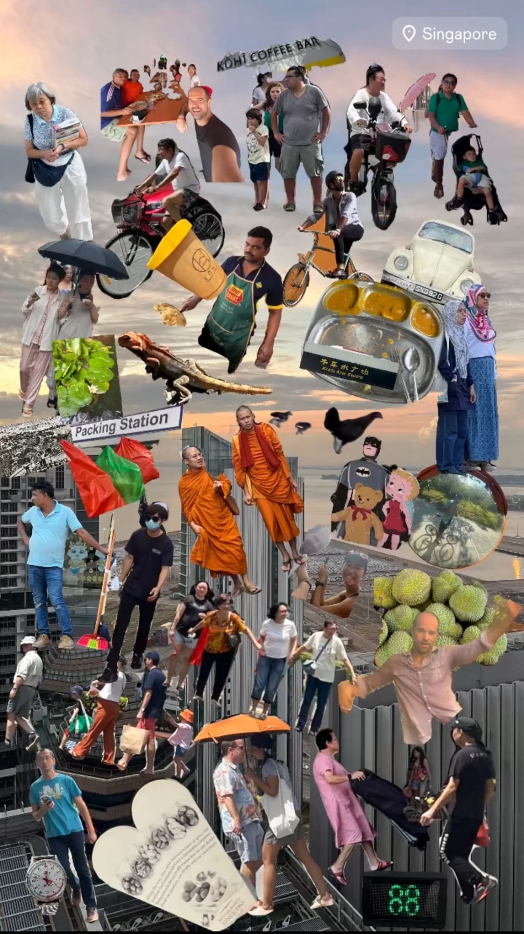 Ended up cycling a lot, swimming in the sea, celebrating a friend’s birthday, doing some good, trying a watermelon steak, eating a bit of durian, watching many random people pass by, dreaming of buying a car, trying to see familiar shapes in clouds or the spaces between clouds. drinking some good coffee, enjoying nature, spending quality time with a special person, eating prata (twice!), watching chicken families around town, enjoying some art, connecting with some long time friends, buying a cool watch, trying wasabi and seaweed seasoned macadamia nuts, and, at all times, just marvelling at the beauty of this city.