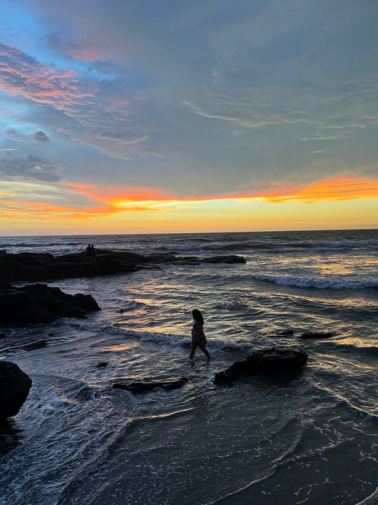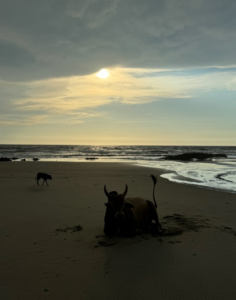The Arabian sea. Smooth waters, the play of sunlight on the surface. A few people walking around or playing on the beach. Some hugging, some kissing, some preparing their wedding photoshoot. Some much love and peace here. And cows! Two beautiful creatures sitting in the sand, seemingly part of the eternal momentum of tides, the change of day and night and the limitless flow of sunshine and energy our Sun provides. I named this type of cow “beach cow”, since I felt that they were happy and at peace there. Somehow they just made the whole place feel more zen-like. Can a cow surf or play in the waves? I think yes! What a fun mental image to behold!