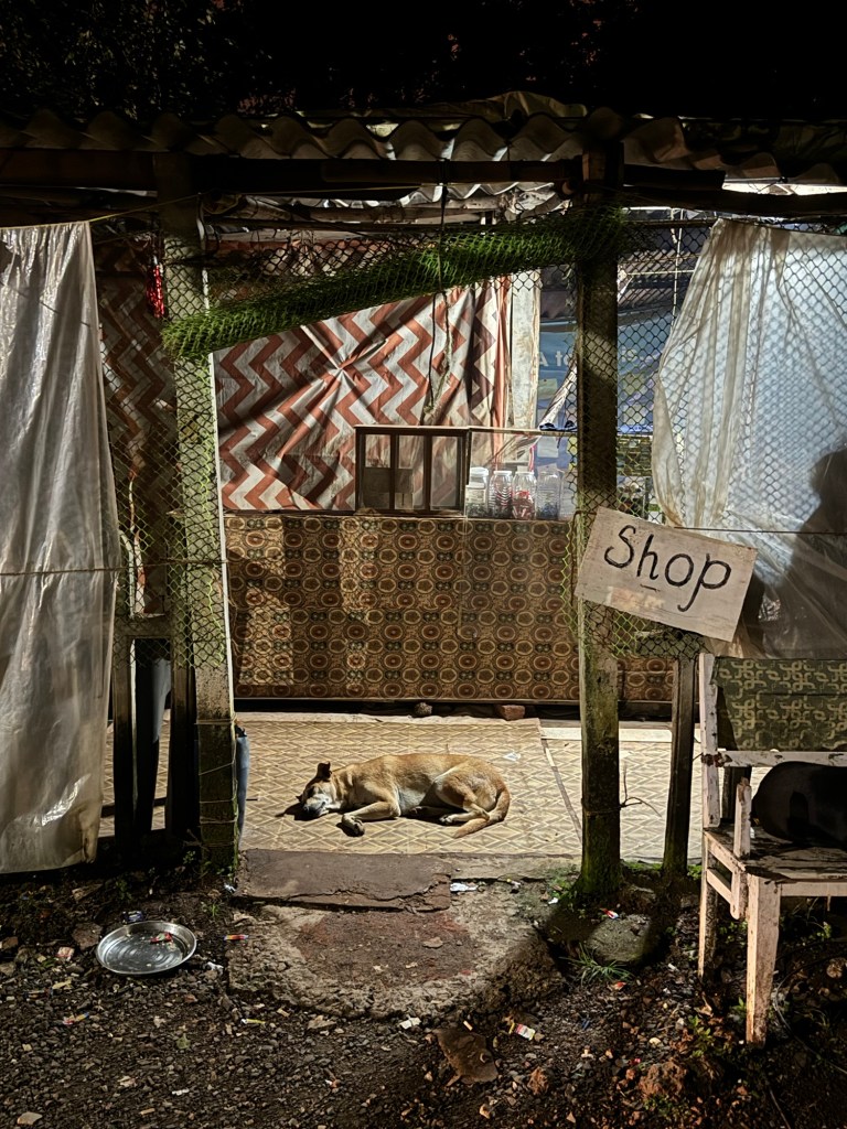 It is now dark. I still need to walk home on the same roads I came. No street lights, cars, motorcycles, pedestrians, cows everywhere. A little stray puppy in the bushes. How I wish I could feed him, take him with me. I hope he survives and has a happy life.