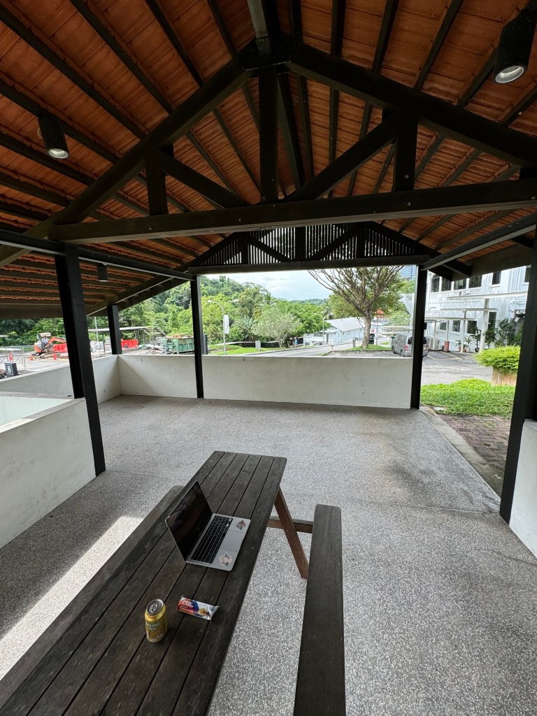 I am back at this place again. This camp-style table in a little gazebo in Gillman Barracks somehow keeps calling me. Any time I feel exhausted and need a quite moment I think of here. Any time the onslaught of thoughts catches me at the strangest moments in my life, I think of wanting to come here to sit with those thoughts, and to write as many of them as I can into my fledgling story collection I dream of calling a blog someday.