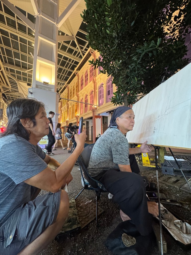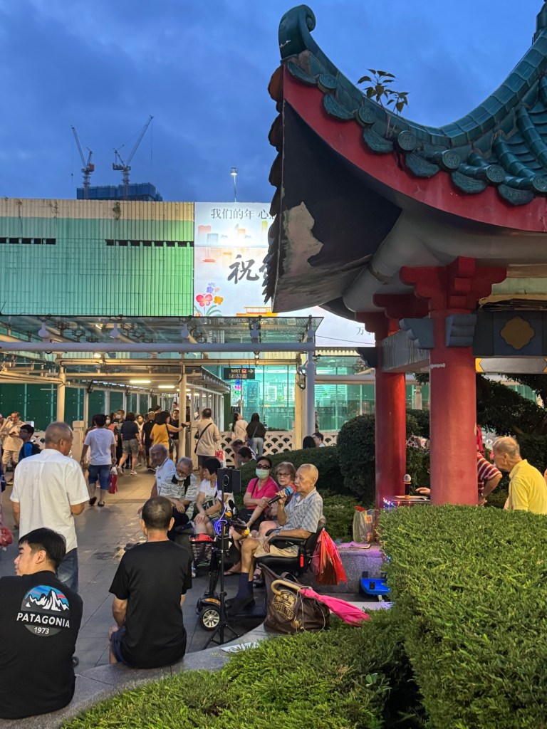 Takes a break for song at a friend’s karaoke stand